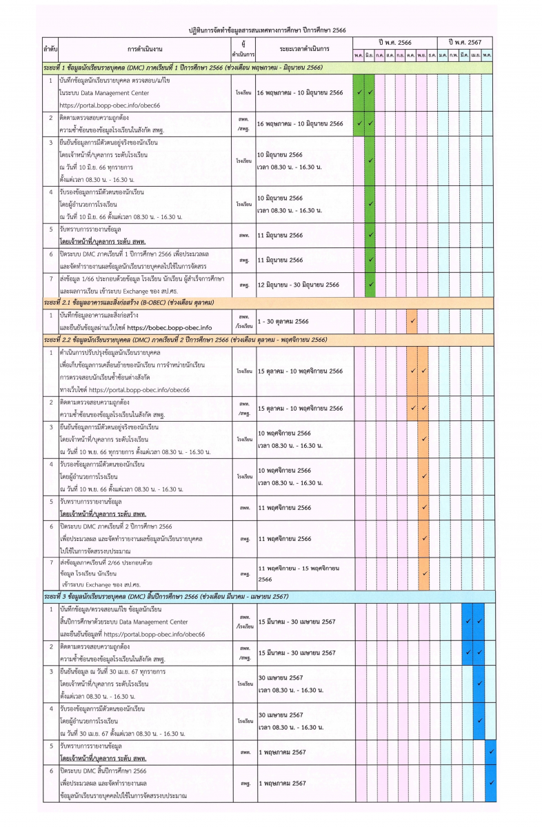 ปฏิทินการจัดทำข้อมูลสารสนเทศทางการศึกษา ปีการศึกษา 2566 (DMC)